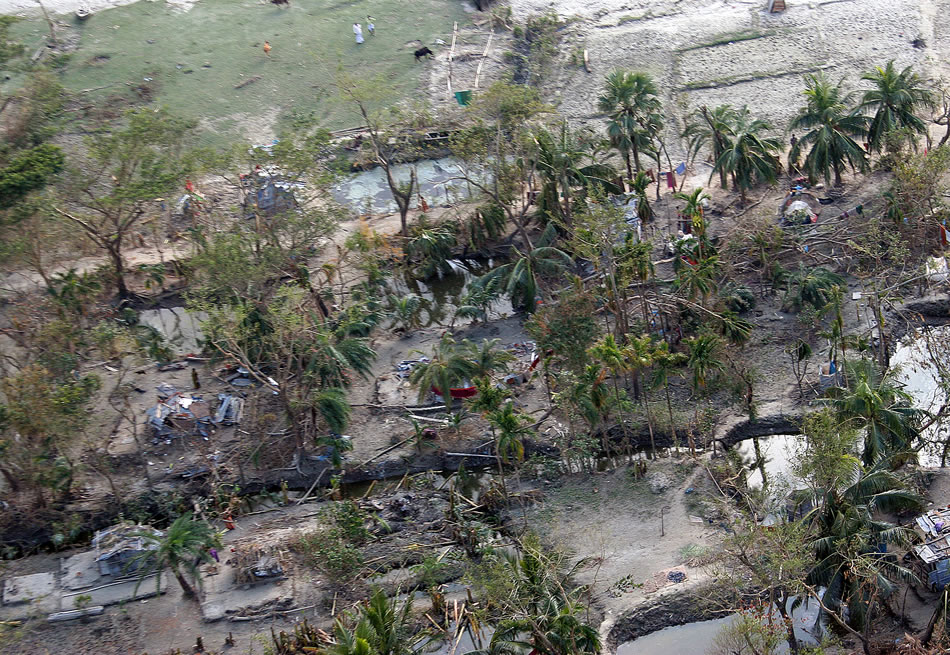 BANGLADESH (Nov. 24, 2007) An aerial view of damage to villages and infrastructure following Cyclone Sidr, which swept into southern Bangladesh Nov. 15. The amphibious assault ship USS Kearsarge (LHD 3), as well as elements of Amphibious Squadron 8 and the 22nd Marine Expeditionary Unit (MEU) Special Operations Capable (SOC) arrived off the coast of Bangladesh Nov. 23 to support ongoing disaster relief operations. U.S. Marine Corps photo by Sgt. Ezekiel R. Kitandwe