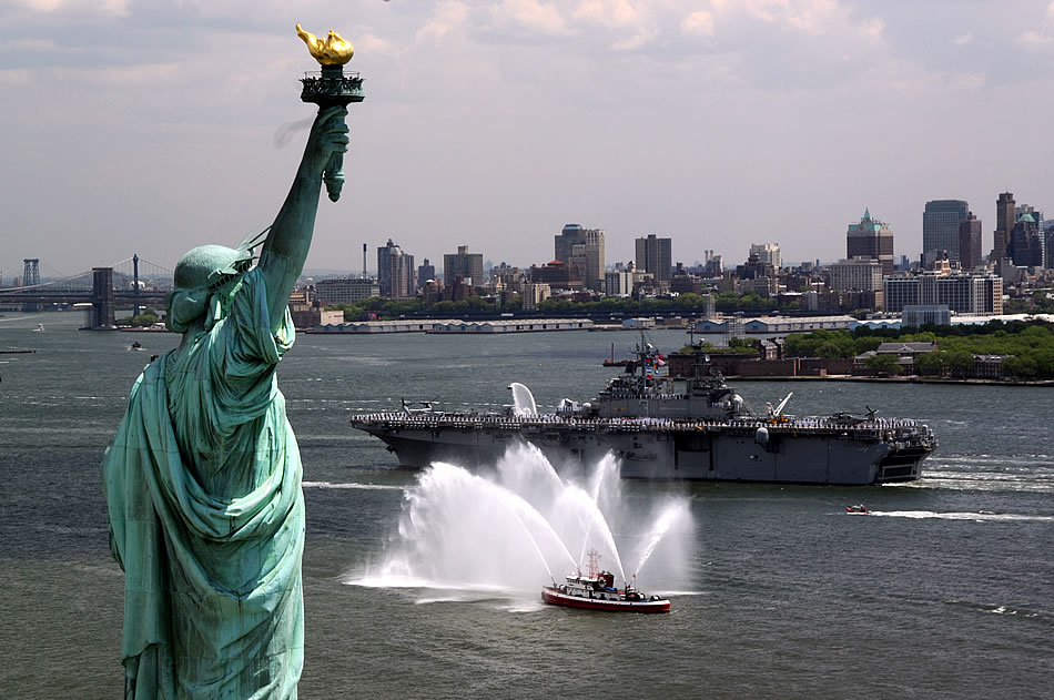 NEW YORK (May 21, 2008) The amphibious assault ship USS Kearsarge (LHD 3) steams up the Hudson River during the parade of ships for Fleet Week New York 2008. More than 4,000 Sailors, Marines, and Coast Guardsmen will participate in various community relations projects and make a port call to New York City. U.S. Navy photo by Mass Communication Specialist 3rd Class Jonathan Snyder (Released)
