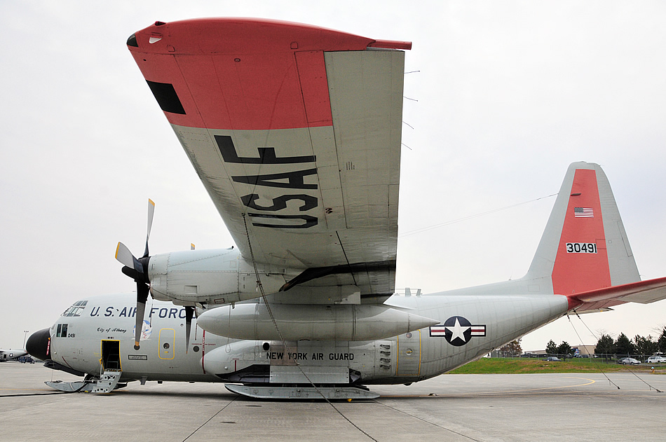 A ski-equipped LC-130 Hercules finishes final preparation in New York, Oct. 21, 2009, before making the 11.000-mile journey to Antarctica in support of the U. S. Antarctica Program. The aircraft and crew are from the New York Air National Guard's 109th Airlift Wing located in Schenectady. (U. S. Air Force photo/Master Sgt. Willie Gizara)