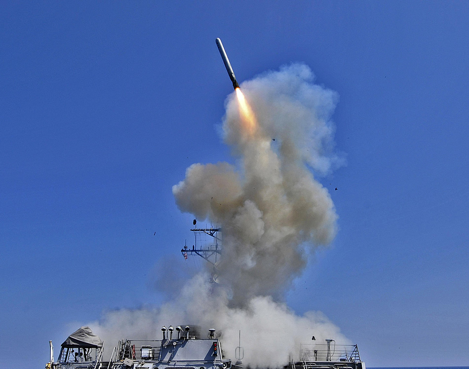 The Arleigh Burke-class guided-missile destroyer USS Barry launches a Tomahawk cruise missile from the ships bow. Barry is currently supporting Joint Task Force Odyssey Dawn. JTF Odyssey Dawn is the U.S. Africa Command task force established to provide operational and tactical command and control of U.S. military forces supporting the international response to the unrest in Libya and enforcement of United Nations Security Council Resolution 1973. UNSCR 1973 authorizes all necessary measures to protect civilians in Libya under threat of attack by Qadhafi regime forces. JTF Odyssey Dawn is commanded by U.S. Navy Adm. Samuel J. Locklear, III. (U.S. Navy photo by Petty Officer 3rd Class Jonathan Sunderman)
