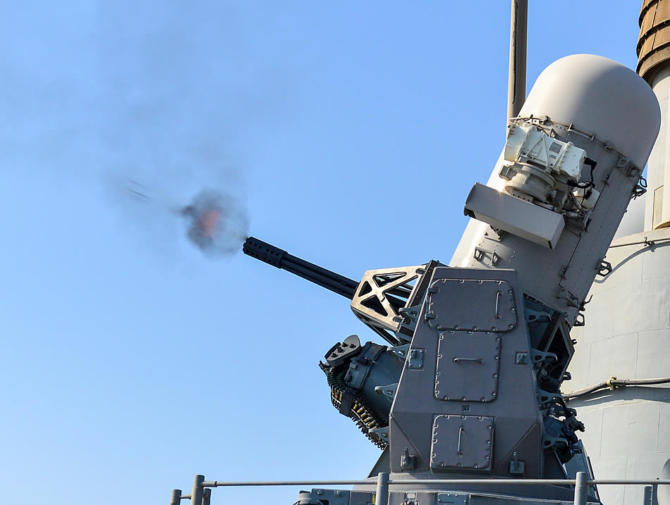 ARABIAN GULF (June 27, 2013) The guided-missile cruiser USS Monterey (CG 61) fires a Close-In Weapons System (CIWS) during a live-fire exercise. Monterey is deployed in support of maritime security operations and theater security cooperation efforts in the U.S. 5th Fleet area of responsibility. (U.S. Navy photo by Mass Communication Specialist 3rd Class Billy Ho)
