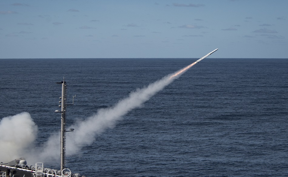 ATLANTIC OCEAN (April 21, 2016) An Evolved Sea Sparrow Missile (ESSM) launches from the aircraft carrier USS Dwight D. Eisenhower (CVN 69), the flagship of the Eisenhower Carrier Strike Group, during a live-fire missile exercise. Ike is underway preparing for an upcoming scheduled deployment. U.S. Navy photo by Mass Communication Specialist 3rd Class J. Alexander Delgado