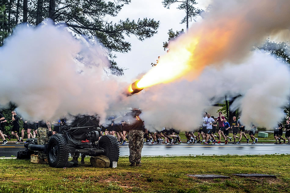 Paratroopers fire an M119 howitzer during the All American Week division run at Fort Bragg, N.C., May 22, 2017. The event celebrates the 82nd Airborne Division with events for soldiers and veterans of the division. Army photo by Sgt. Anthony Hewitt