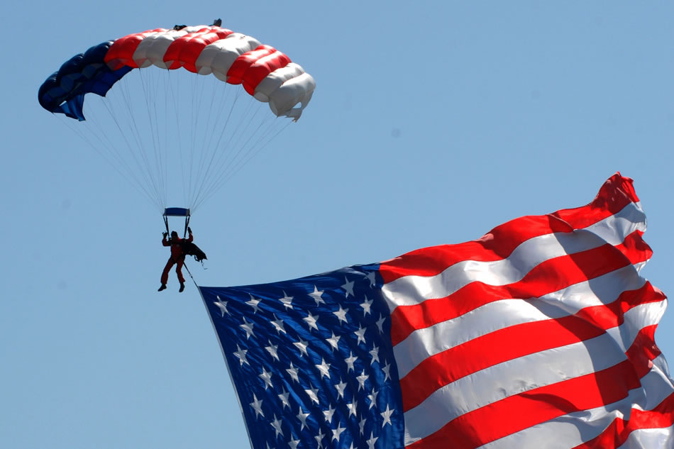 Former U.S. Army Special Forces member Paul McGowan drops into the opening ceremonies at the Joint Service Open House at Andrews Air Force Base, Md., May 17, 2008. The three-day event coincides with the 60th Anniversary of the Berlin Airlift. Defense Dept. photo by Fred W. Baker III