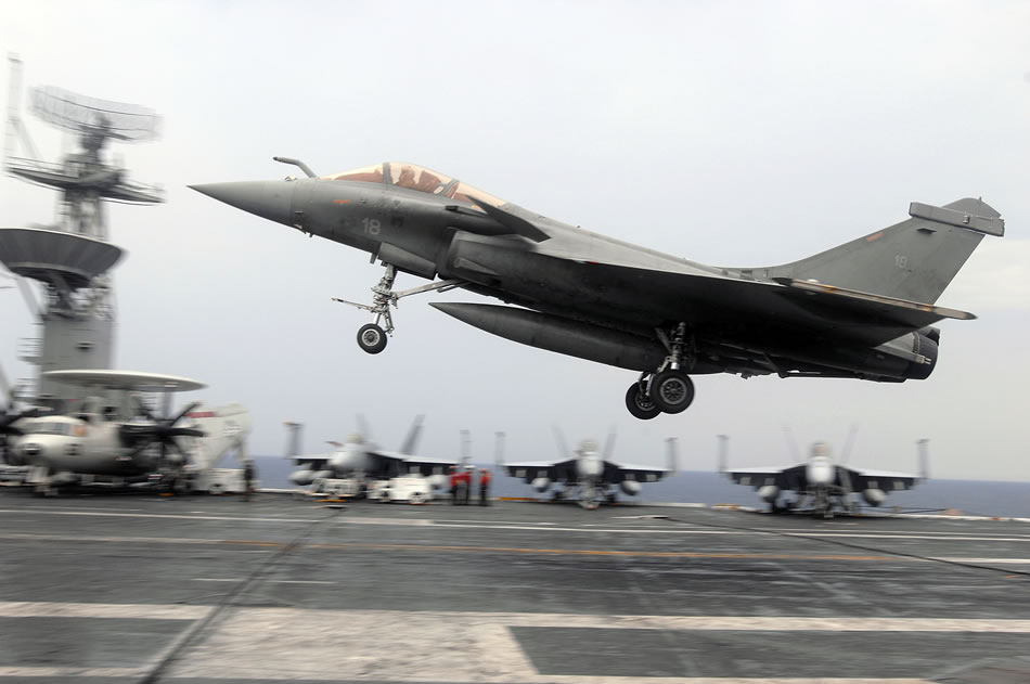 ATLANTIC OCEAN (July 23, 2008) A French F-2 Rafale fighter performs a touch-and-go during combined French and American carrier qualifications aboard the aircraft carrier USS Theodore Roosevelt (CVN 71). The Theodore Roosevelt Carrier Strike Group is participating in Joint Task Force Exercise "Operation Brimstone" off the Atlantic coast. (U.S. Navy photo by Mass Communication Specialist 3rd Class Sheldon Rowley)