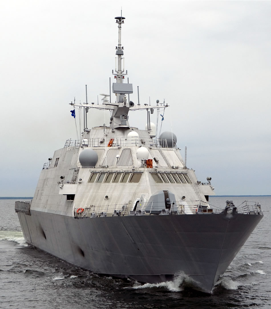 MARINETTE, Wis. (July 30, 2008) The first U.S. Navy Littoral Combat Ship, Freedom (LCS 1), the inaugural ship in an entirely new class of U.S. Navy surface warships , is seen underway during day two of Builders Trials. The ship is designed for littoral, or close-to-shore, operations and to provide access and dominance in coastal-water areas. (Photo provided courtesy Lockheed Martin)