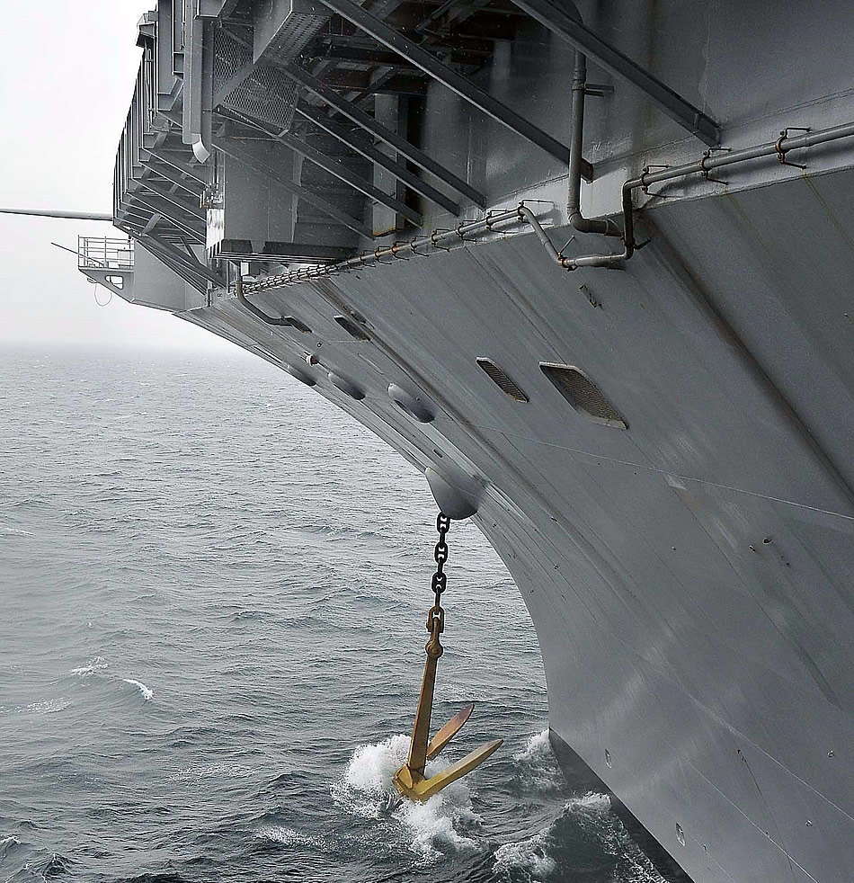 PACIFIC OCEAN (May 6, 2009) The aircraft carrier USS George Washington (CVN 73) drops her port anchor during an anchor test. George Washington is underway conducting sea trials after completing a Selected Restricted Availability at Fleet Activities Yokosuka. (U.S. Navy photo by Mass Communication Specialist Seaman Apprentice Rachel N. Clayton/Released)
