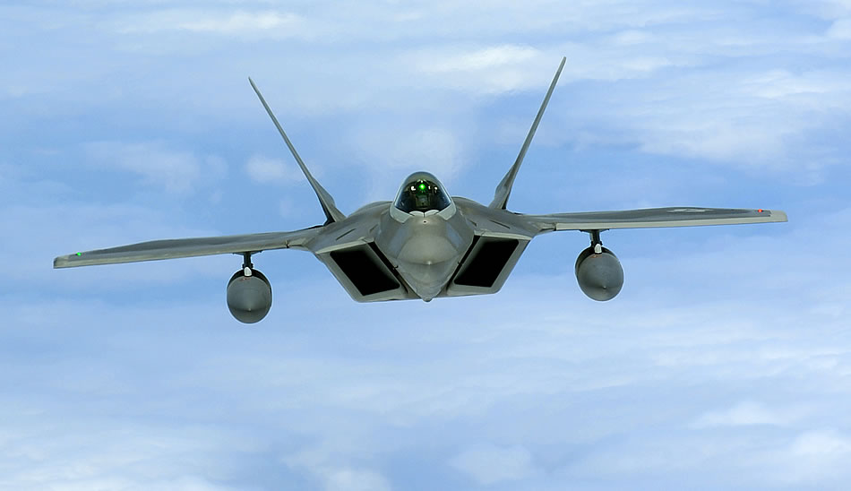 An F-22 Raptor flies over the Pacific Ocean July 2, 2010, on its way to its new home at Joint Base Pearl Harbor-Hickam, Hawaii. (U.S. Air Force photo/Senior Airman Gustavo Gonzalez)