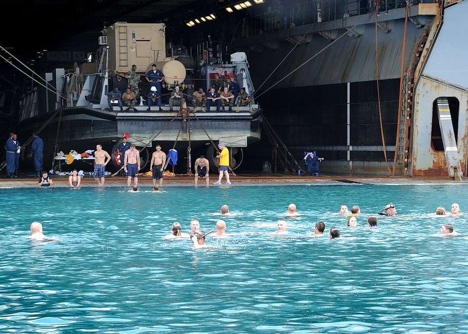 BLUEFIELDS, Nicaragua (Sept. 22 2010) Service members embarked aboard the multipurpose amphibious assault ship USS Iwo Jima (LHD 7) swim in the Caribbean waters during a swim call off the coast of Bluefields, Nicaragua. Iwo Jima is anchored off the coast of Nicaragua conducting a Continuing Promise 2010 humanitarian civic assistance (HCA) mission. (U.S. Navy photo by Mass Communication Specialist 2nd Class Bryan Weyers)
