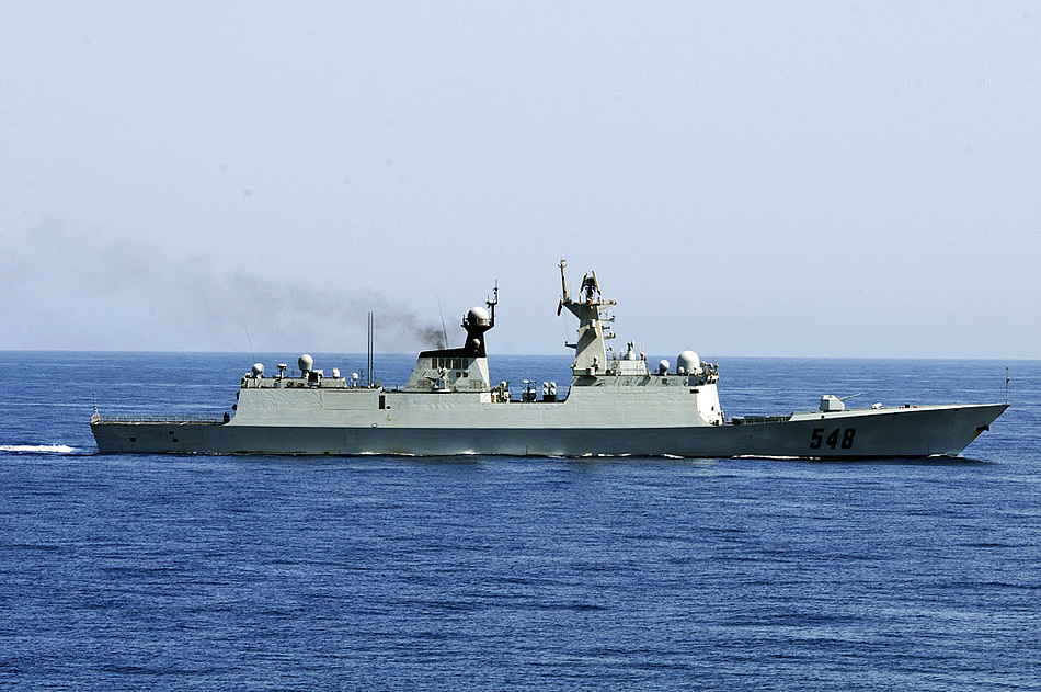 The Chinese Peoples Liberation Army frigate Yi Yang transits through the Gulf of Aden before conducting a bilateral counterpiracy exercise with the guided-missile destroyer USS Winston S. Churchill in the Gulf of Aden, Sept. 17, 2012. The exercise focused on U.S. and Chinese naval cooperation in detecting, boarding, and searching suspected pirated vessels. U.S. Navy photo by Petty Officer 2nd Class Aaron Chase